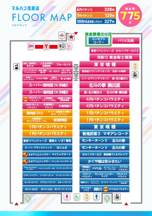 | 稼働台数 | パチンコ448台 / パチスロ327台 |