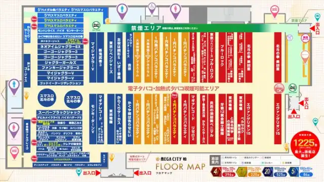 | 稼働台数 | パチンコ616台 / パチスロ609台 |