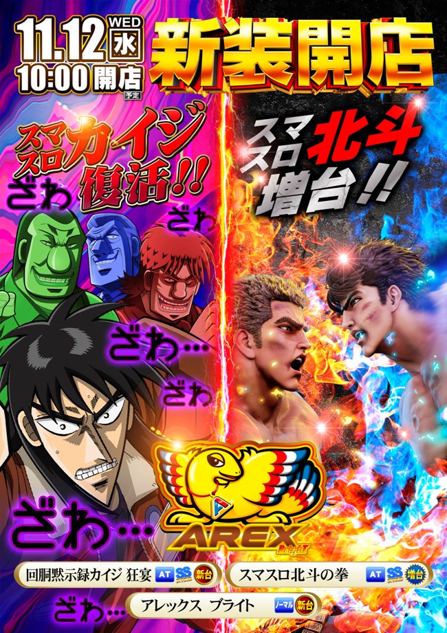 | 営業時間 | (定休日:年中無休) 平常営業日 10:00~23:00 (遊技終了時間 22:45) |