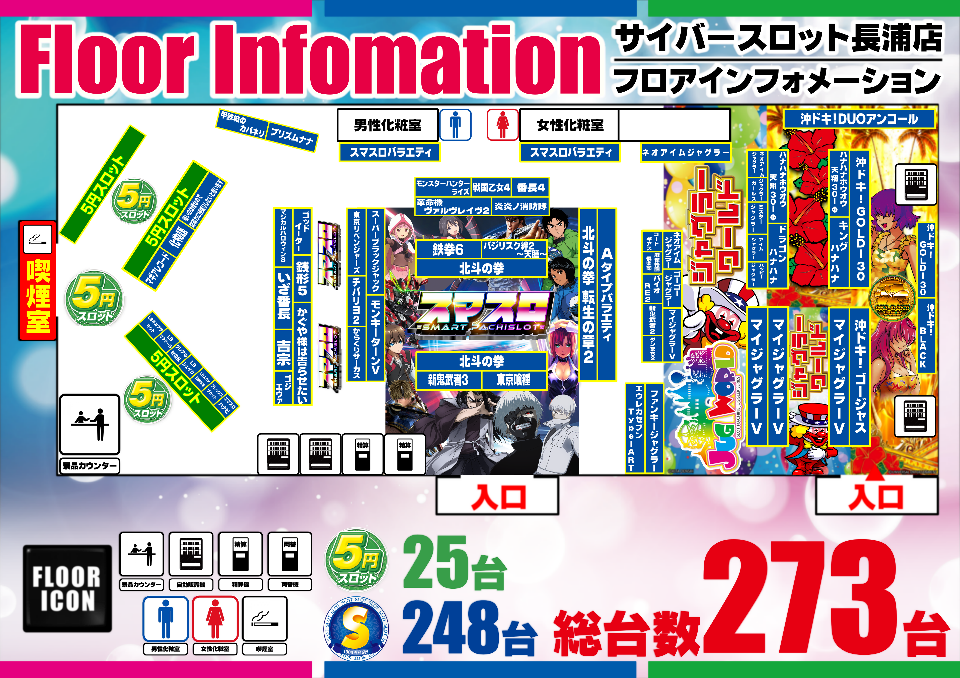| 稼働台数 | パチスロ273台 |