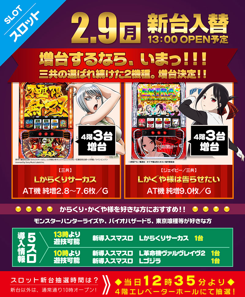 フロア毎に分煙していますのでニオイを気にせず快適に遊技出来ます。