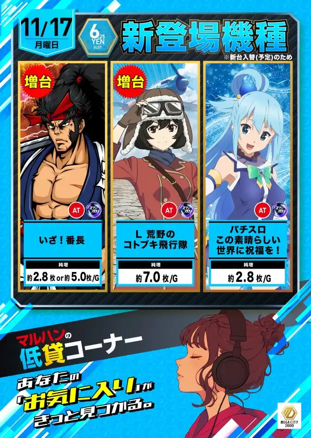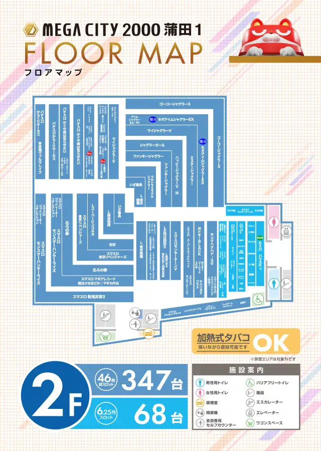 | 稼働台数 | パチンコ630台 / パチスロ418台 |