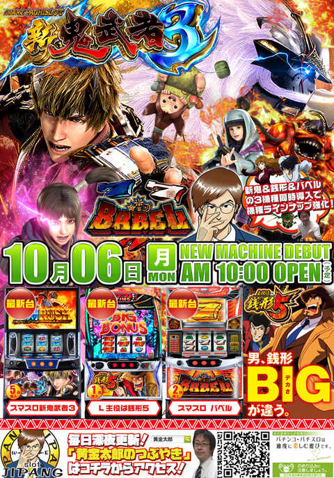 もちろん10月終盤戦も皆様にじっくりと楽しんでいただけるように毎日が真剣勝負の精神を全面に押し出したワクワクと心躍るジパングワールドを展開!