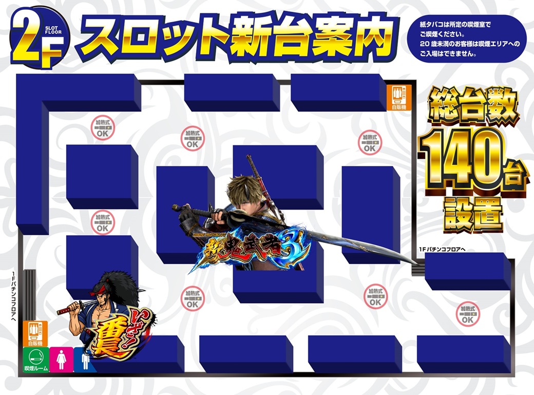 稼働台数 | パチンコ150台 / パチスロ140台 |