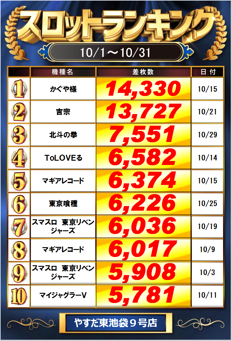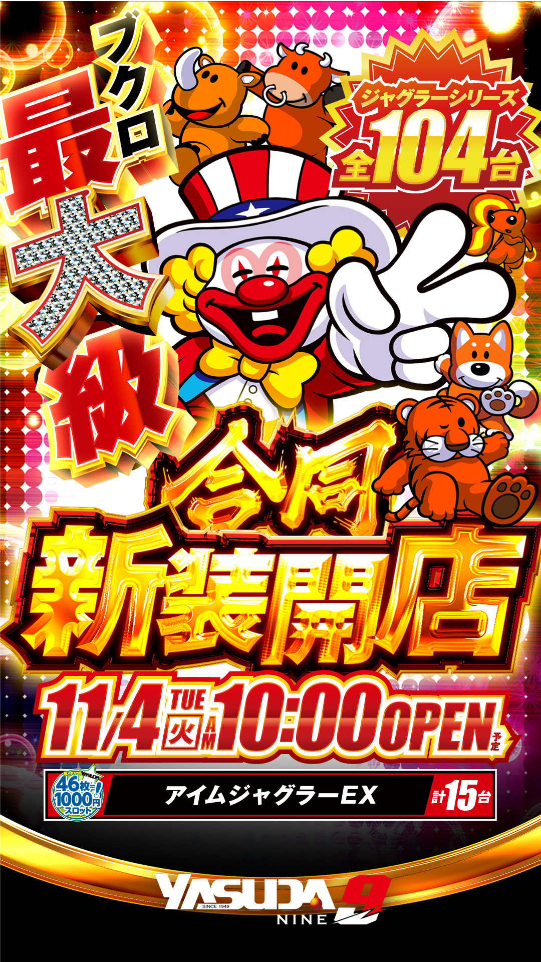 | 営業時間 | (定休日:年中無休) 平常営業日 10:00~23:00 (遊技終了時間 22:45) |
