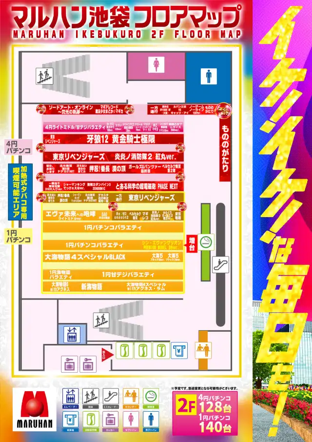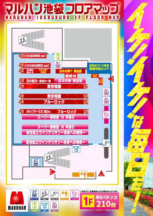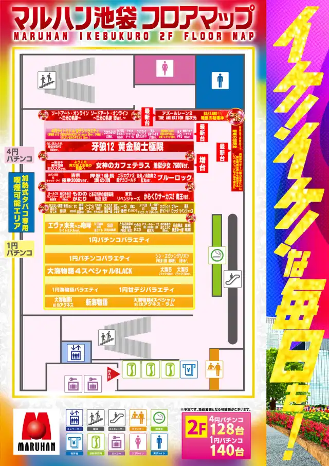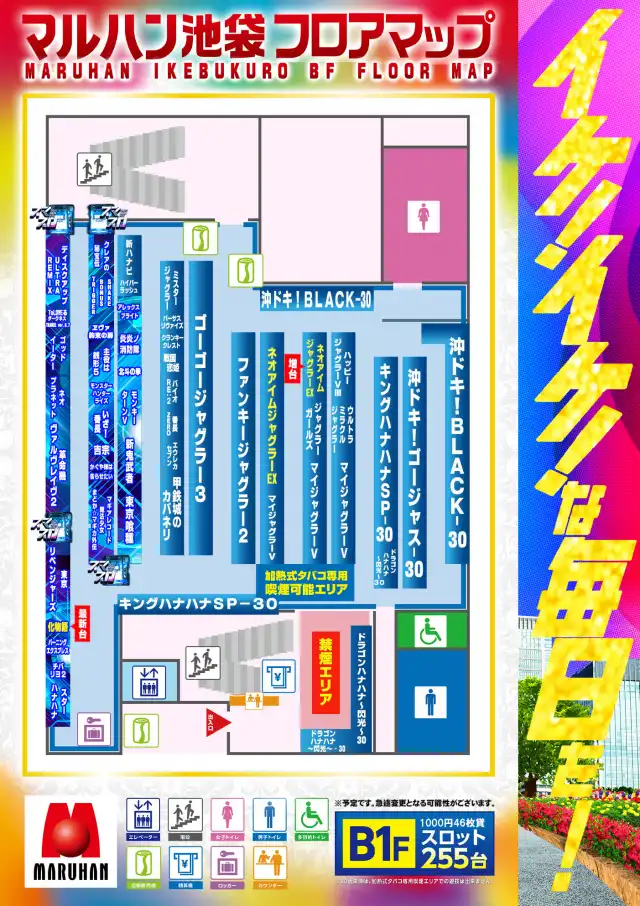 | 稼働台数 | パチンコ478台 / パチスロ255台 |