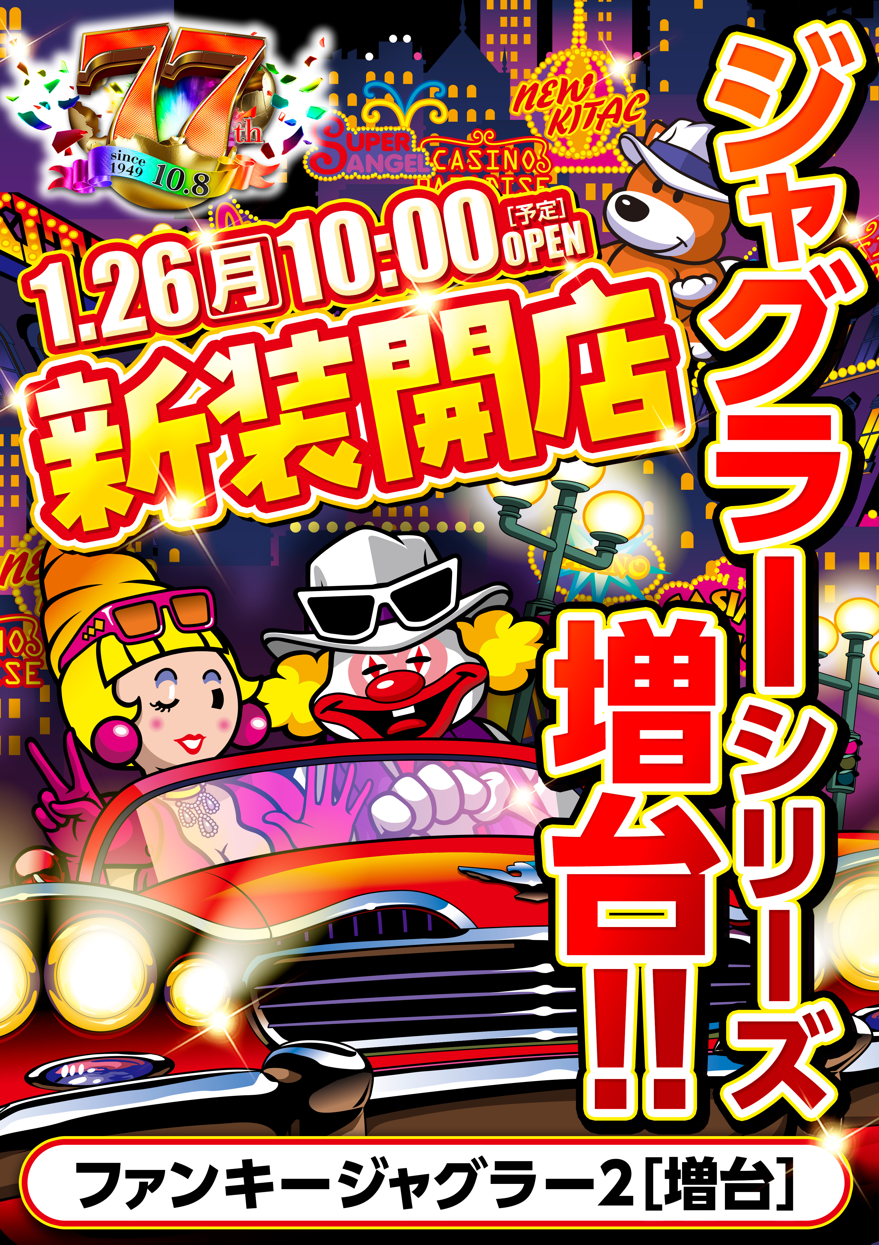 | 営業時間 | (定休日:年中無休) 平常営業日 10:00~23:00 (遊技終了時間 22:45) |