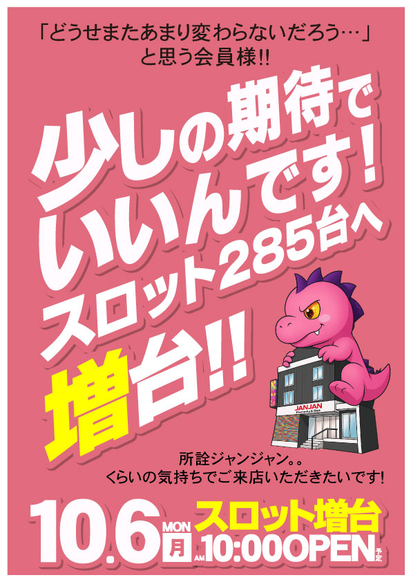 稼働台数 | パチンコ302台 / パチスロ285台 |
