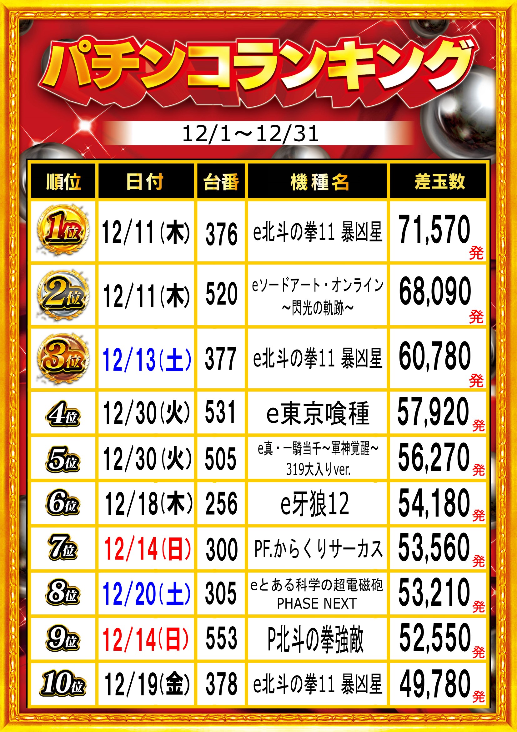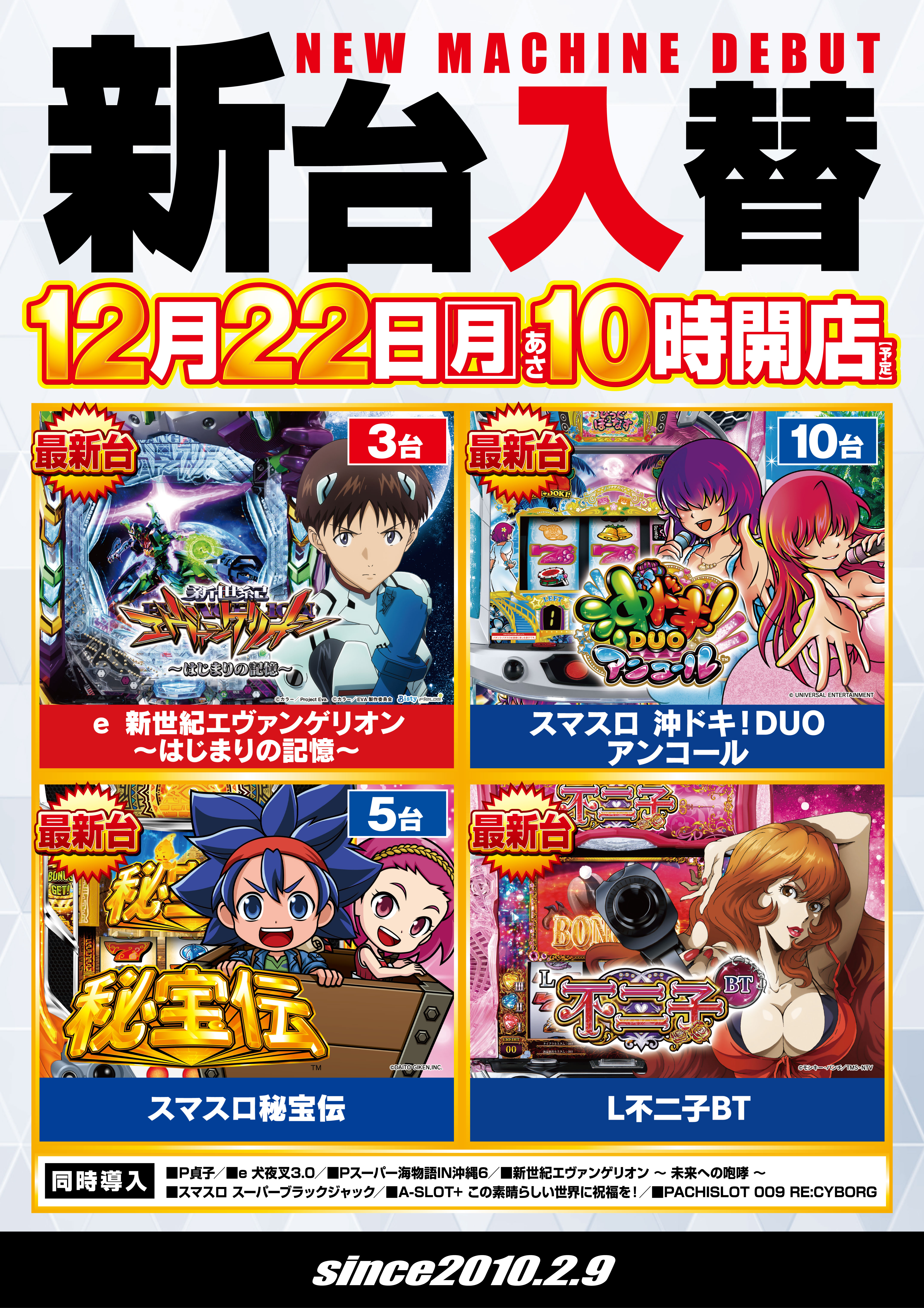 | 稼働台数 | パチンコ338台 / パチスロ288台 |
