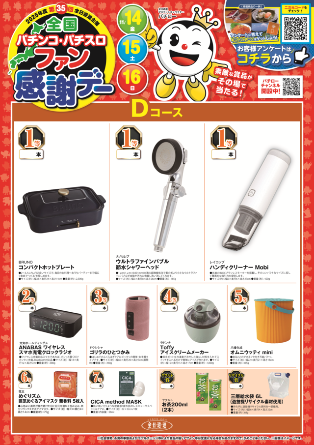 | 稼働台数 | パチンコ120台 / パチスロ72台 |