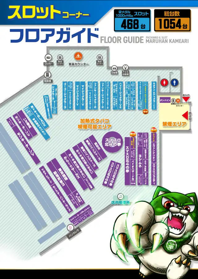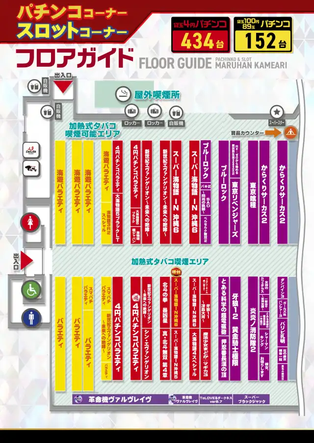 | 稼働台数 | パチンコ586台 / パチスロ466台 |