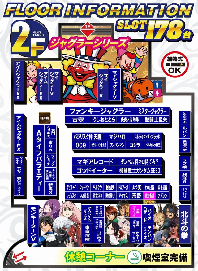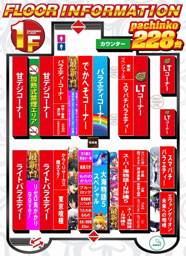 | 稼働台数 | パチンコ226台 / パチスロ178台 |