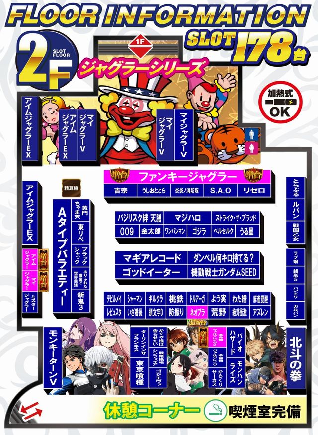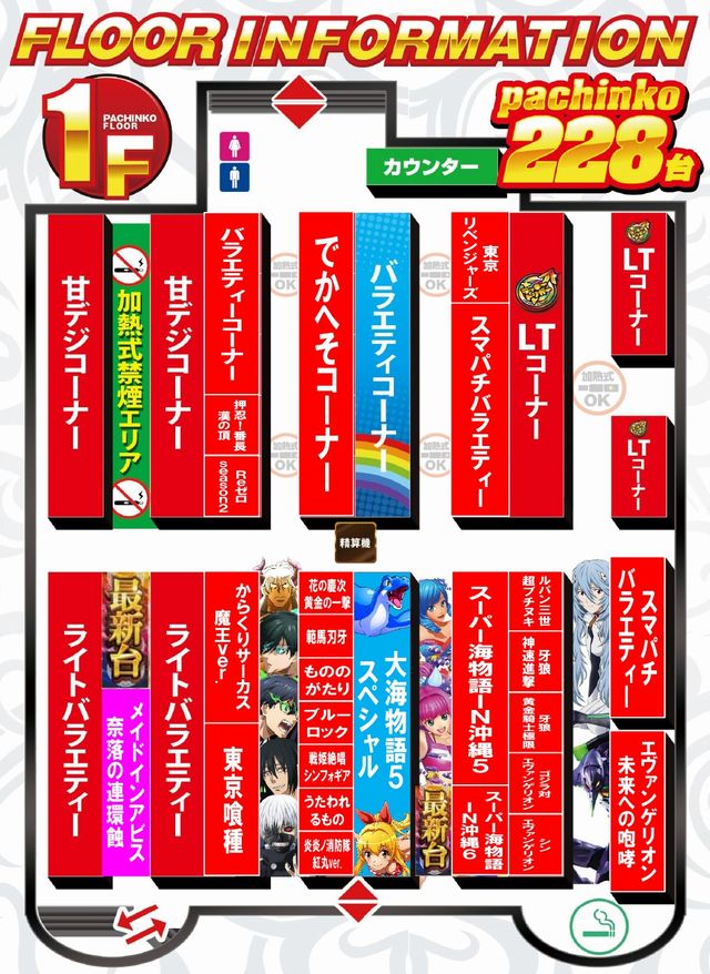 | 稼働台数 | パチンコ227台 / パチスロ178台 |