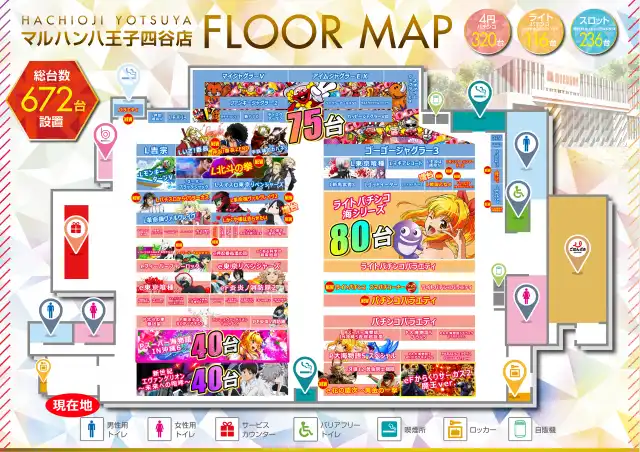 | 稼働台数 | パチンコ436台 / パチスロ236台 |