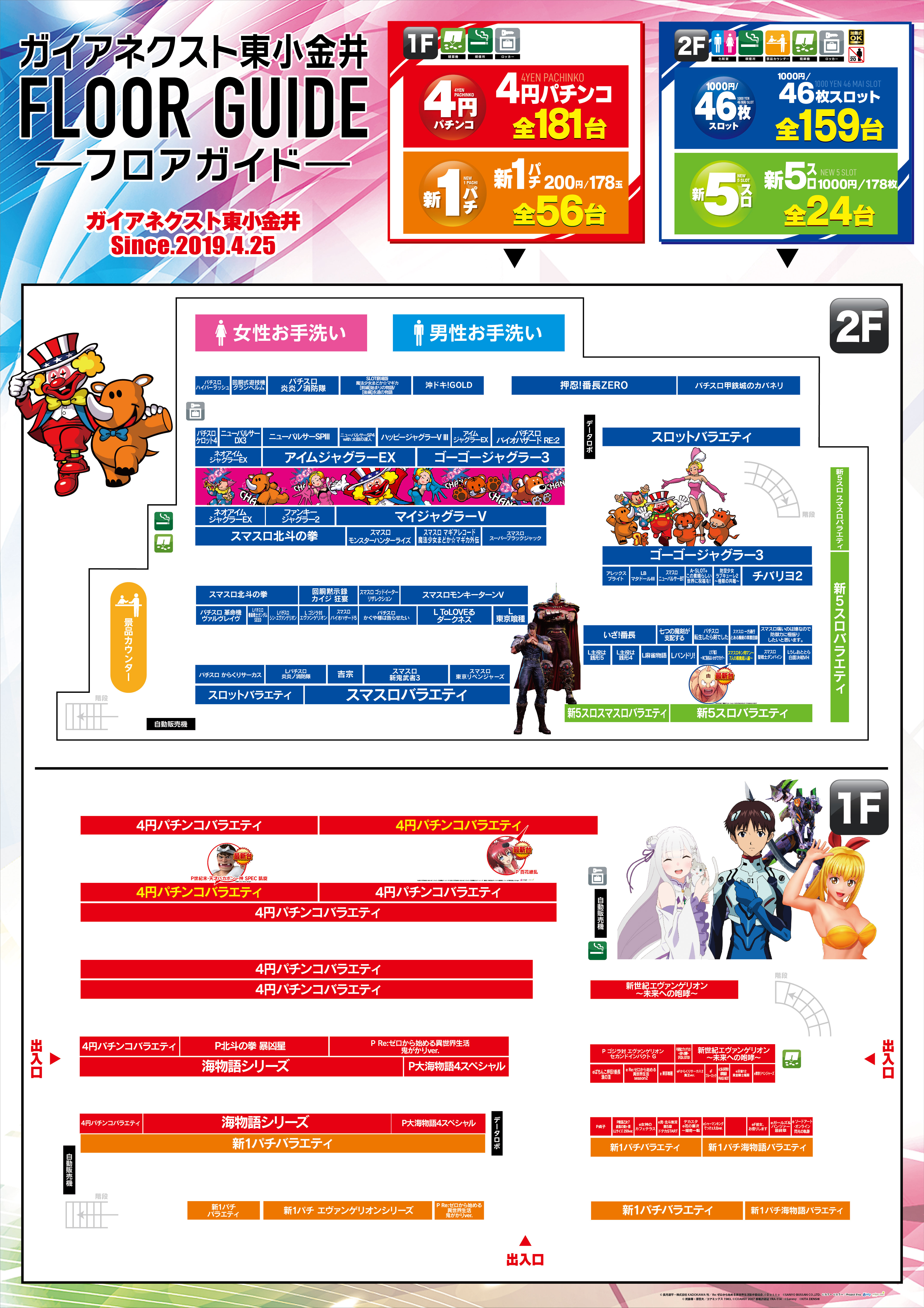 | 稼働台数 | パチンコ237台 / パチスロ183台 |