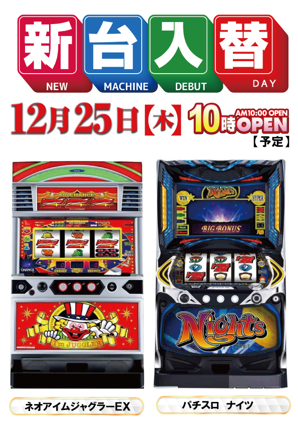 パチンコは遊べる甘デジを多く設置致しております!スロットはAタイプ「ジャグラー」をはじめバラエティー豊富にラインナップ。