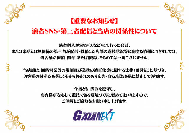 | 稼働台数 | パチンコ311台 / パチスロ206台 |