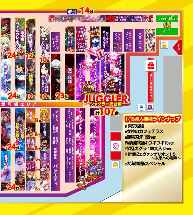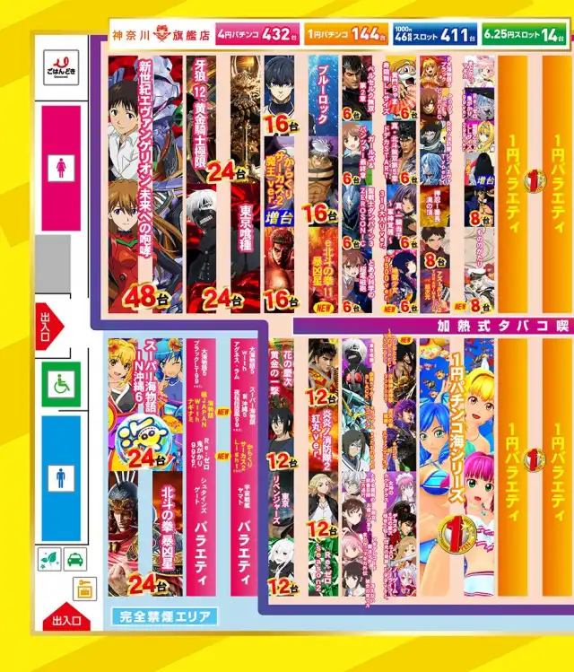 | 稼働台数 | パチンコ576台 / パチスロ425台 |