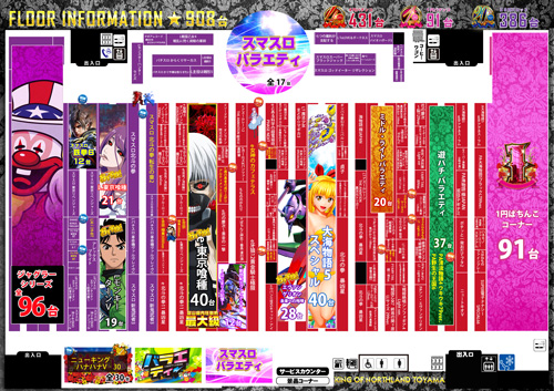 | 稼働台数 | パチンコ522台 / パチスロ386台 |