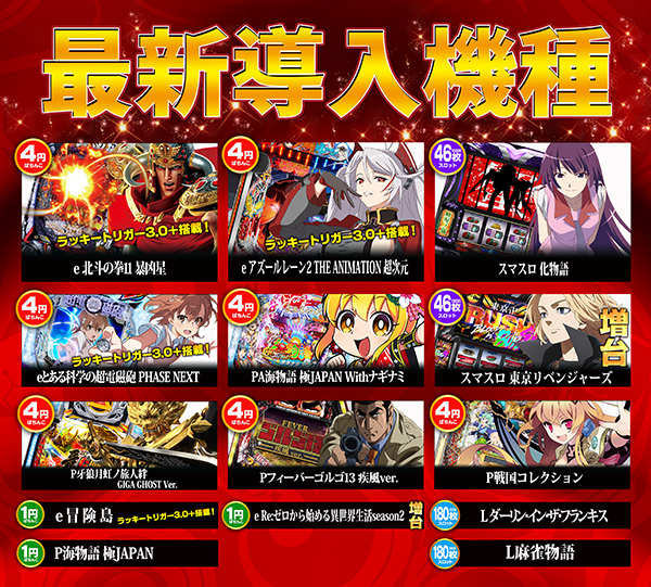 | 稼働台数 | パチンコ312台 / パチスロ225台 |