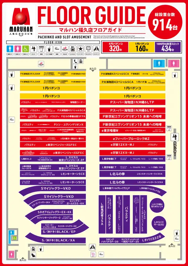 | 稼働台数 | パチンコ480台 / パチスロ434台 |