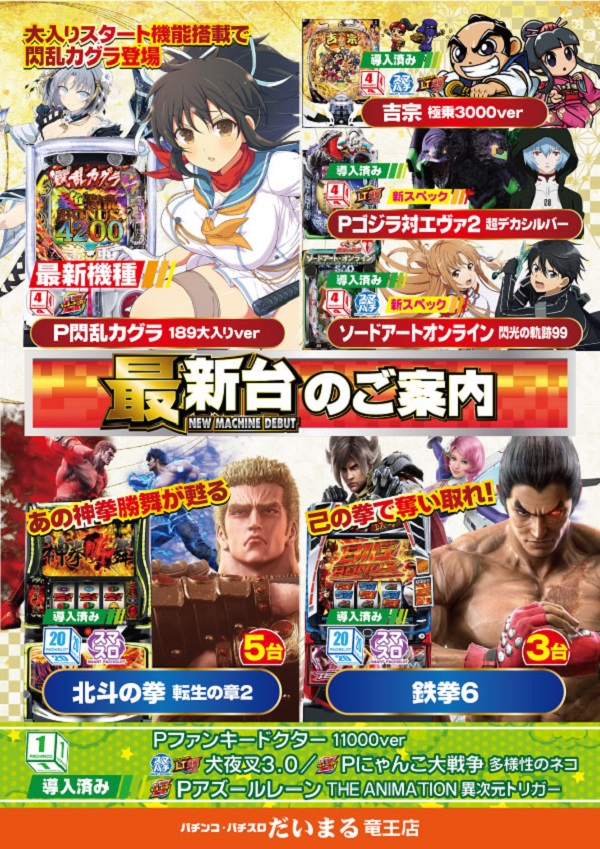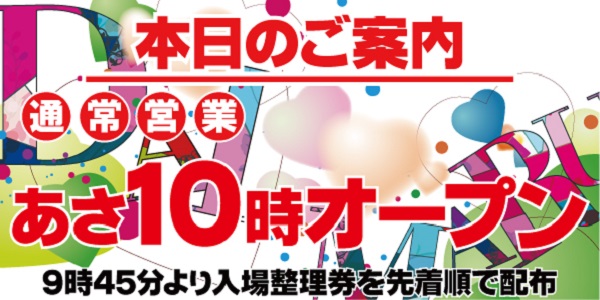 | 営業時間 | 10:00 ~ 23:00 遊技終了は22:45となります。 |