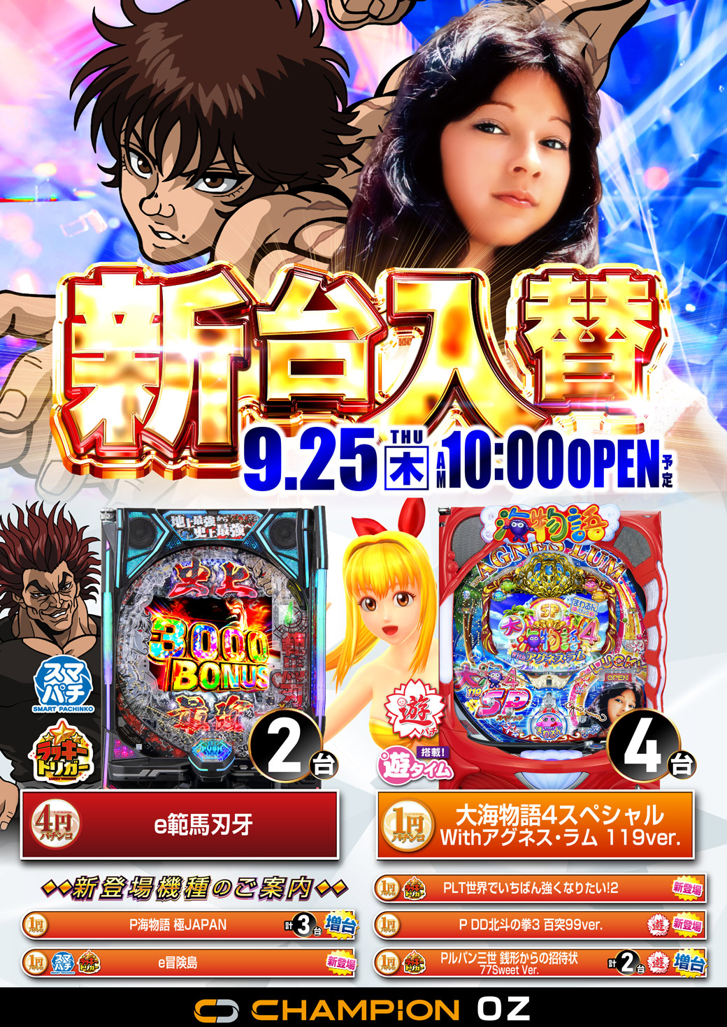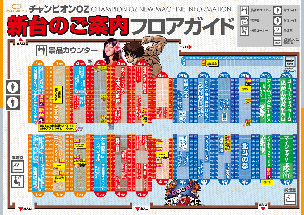 稼働台数 | パチンコ376台 / パチスロ288台 |