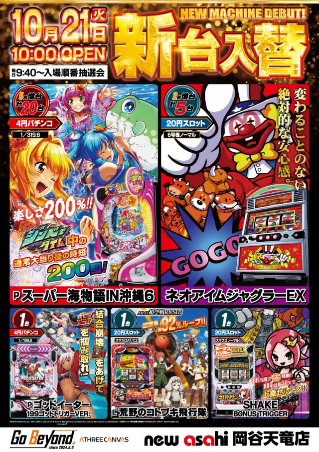 10月21日(火)新台入替!!(予定)
