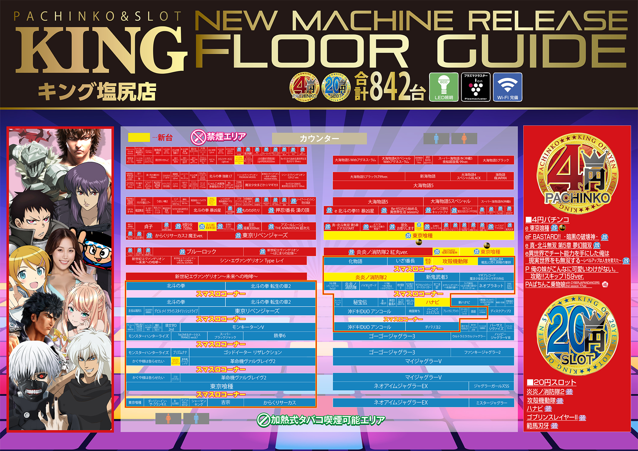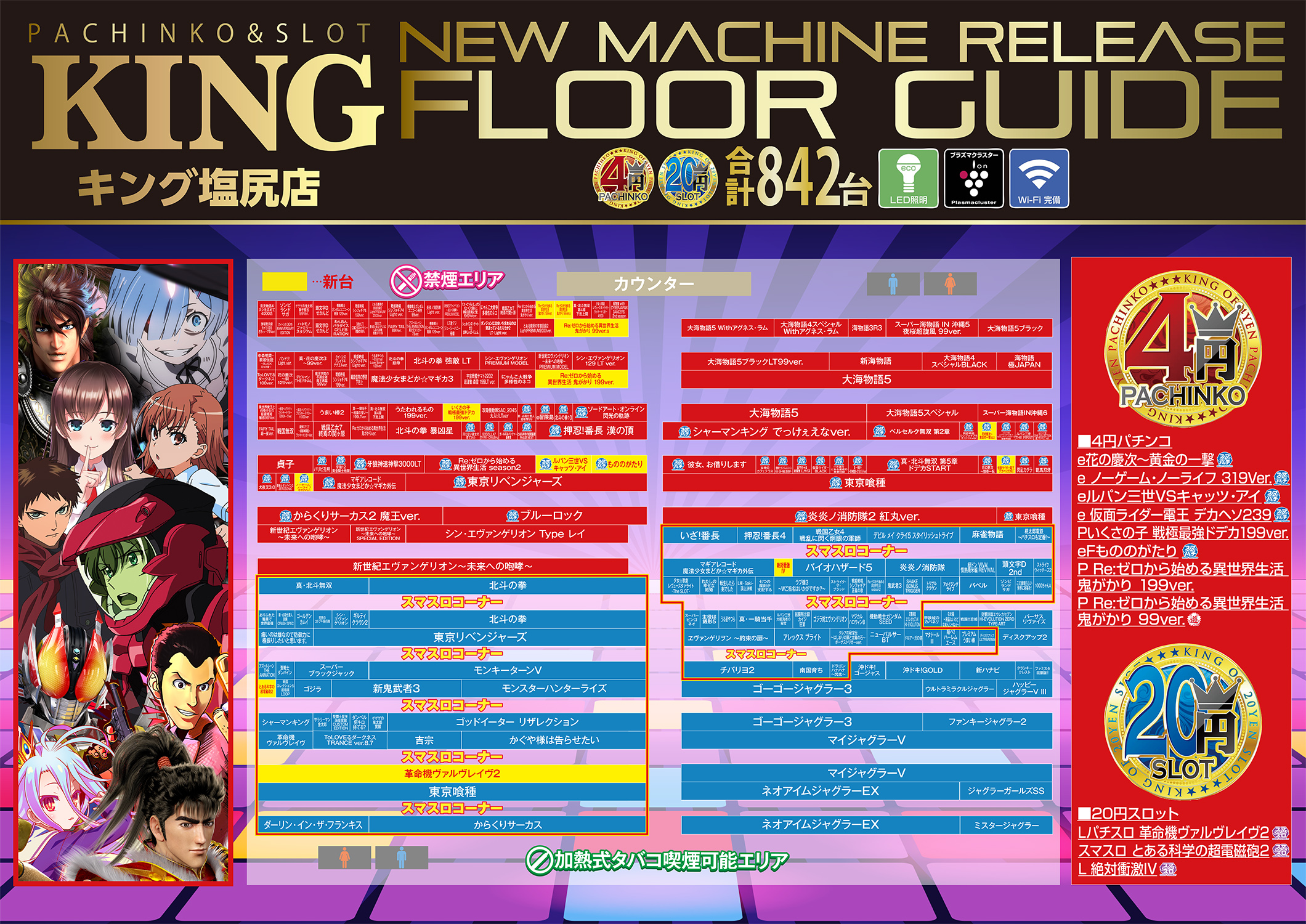 設置台数は842台で塩尻地域最大級ですo(^▽^)o 天井が高くなっているので空気がこもりにくくなっています(*^ー゚)b お客様は10代から高齢の方まで幅広く、女性も多くご来店されています(*´ω`*) 近くにはコンビニや飲食店があり、休みの日に朝からゆっくり遊ぶのにも困りませんヾ( ´∀` )ノ♪ 大型平面駐車場完備で駐車場・店内ともに段差がなく、足の不自由な方にもご来店いただけます(≧▽≦)