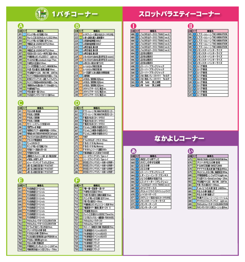 | 稼働台数 | パチンコ616台 / パチスロ444台 |