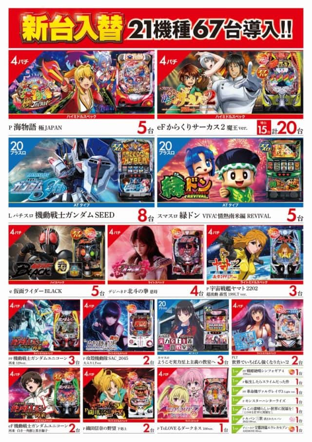| 営業時間 | 09:00 ~ 23:00(定休日:年中無休(新台入替時はお休を頂く場合がございます)) |