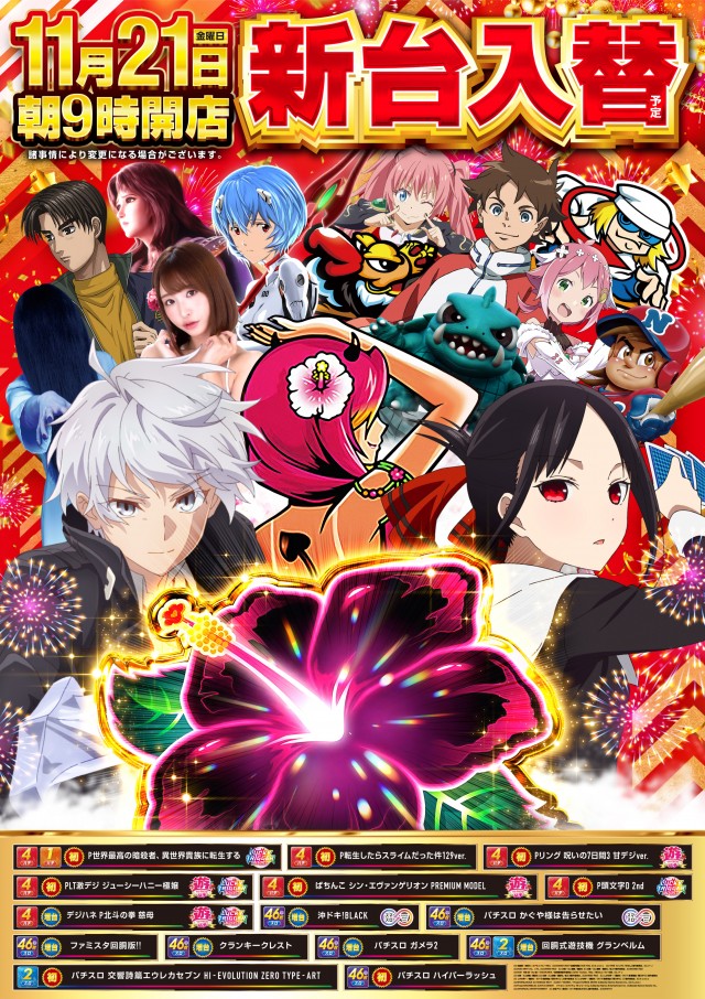 | 稼働台数 | パチンコ513台 / パチスロ572台 |