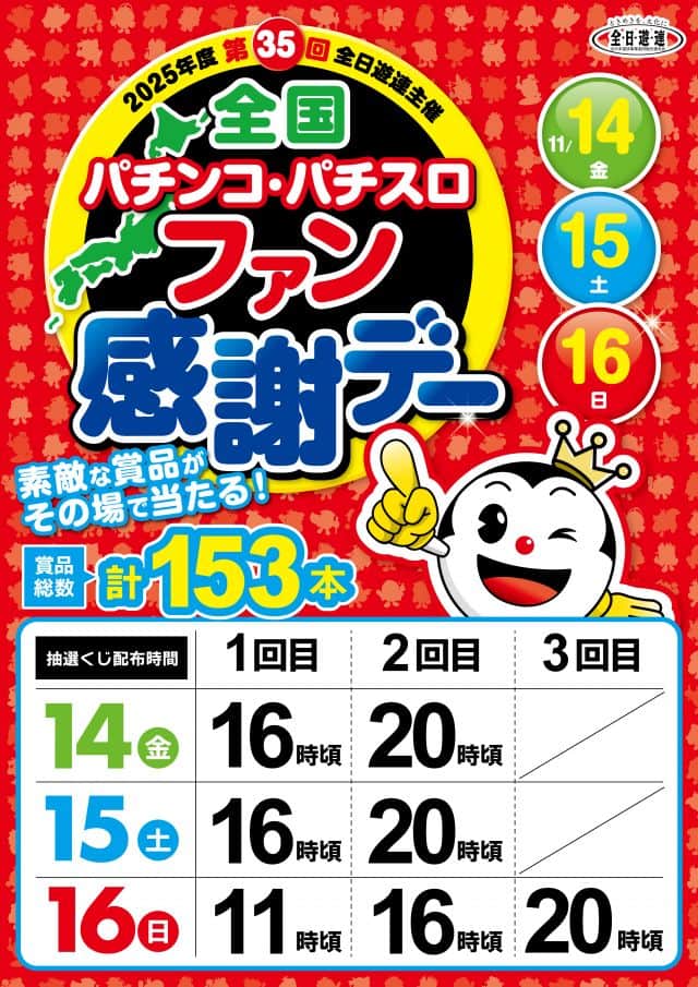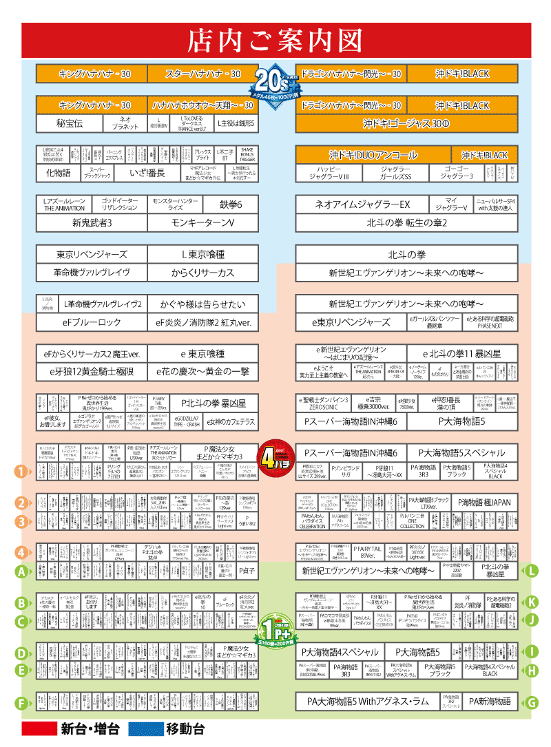 | 営業時間 | 09:00 ~ 23:00 不定休(新台入替前日は店休日を頂きます) 遊技終了22:50 |