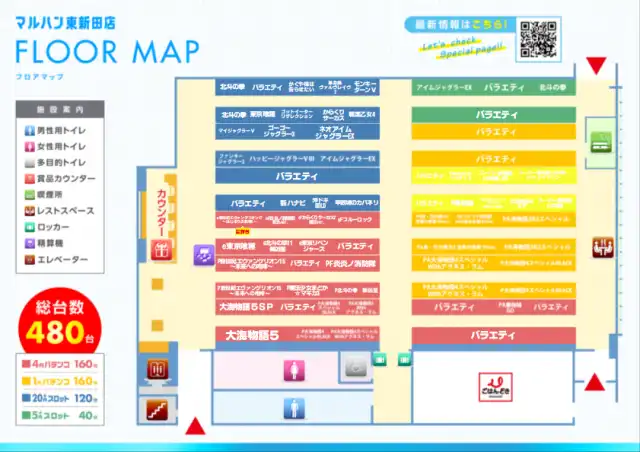 | 稼働台数 | パチンコ319台 / パチスロ160台 |