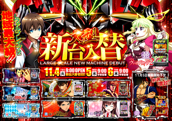 | 稼働台数 | パチンコ494台 / パチスロ487台 |