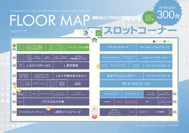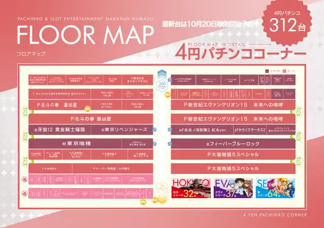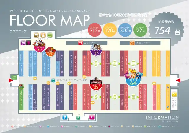稼働台数 | パチンコ432台 / パチスロ322台 |