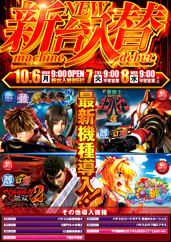 稼働台数 | パチンコ400台 / パチスロ260台 |