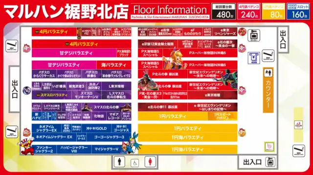 | 稼働台数 | パチンコ320台 / パチスロ160台 |