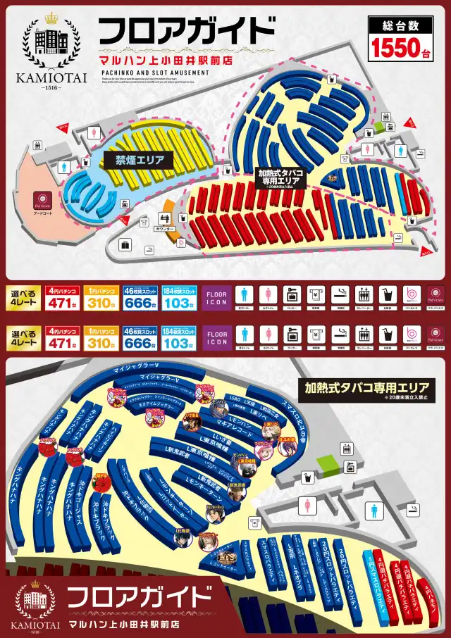 | 稼働台数 | パチンコ781台 / パチスロ769台 |