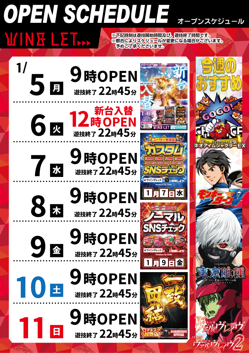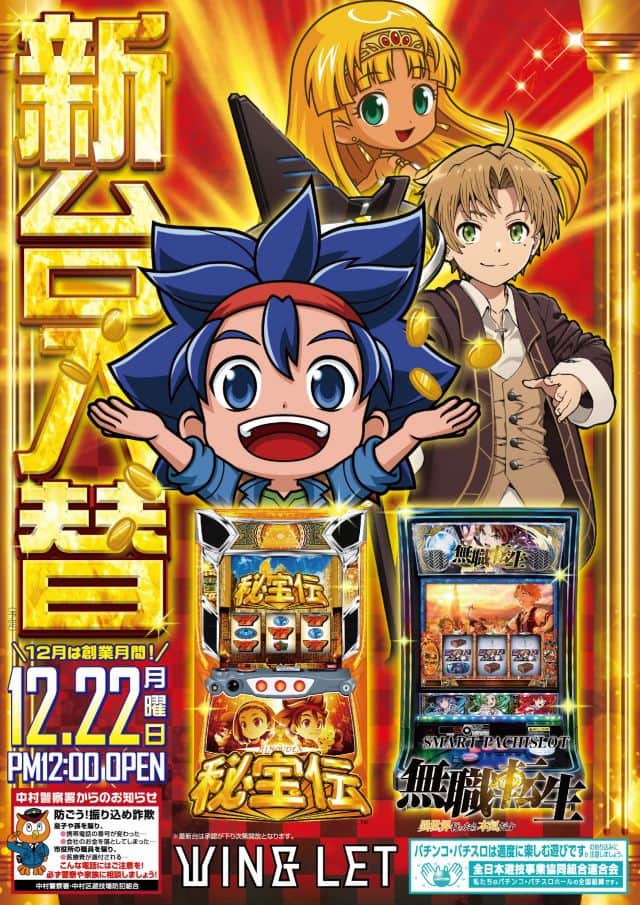 | 営業時間 | 09:00 ~ 22:45(定休日:年中無休(新台入替前日を除く)) |