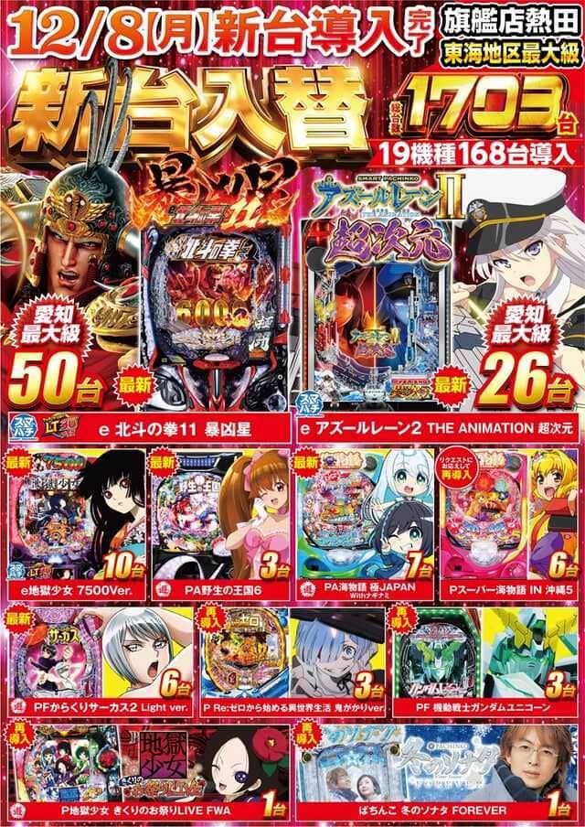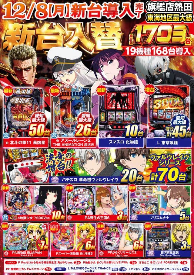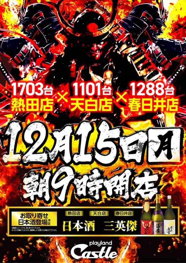 | 営業時間 | 09:00 ~ 23:00(定休日:年中無休※新台入替時などお休みを頂く場合があります。) |