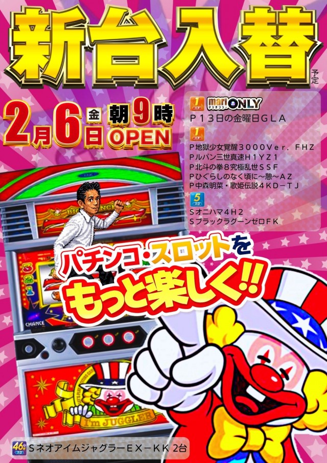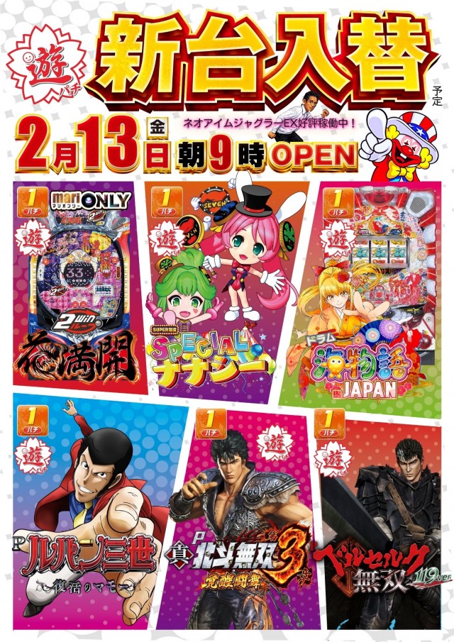 | 営業時間 | 09:00 ~ 23:00 22時45分までご遊技いただけます。 |