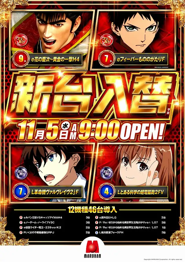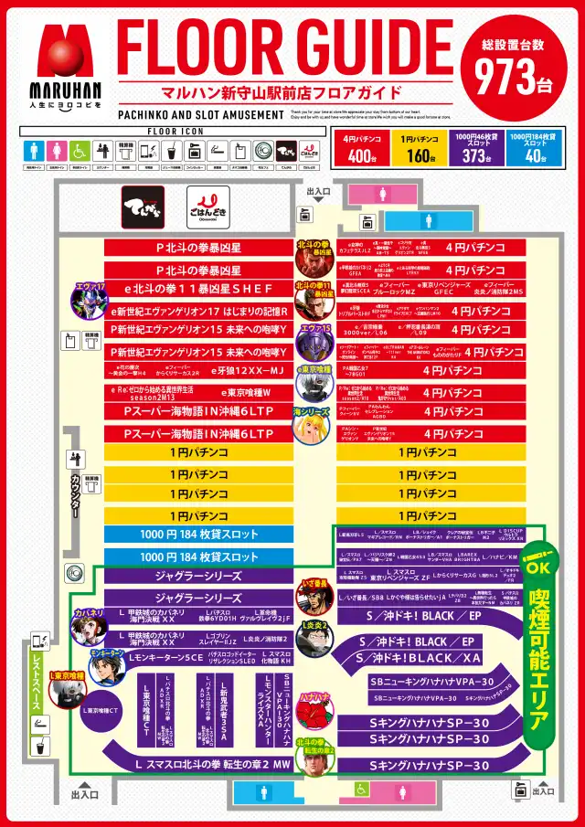| 稼働台数 | パチンコ560台 / パチスロ413台 |