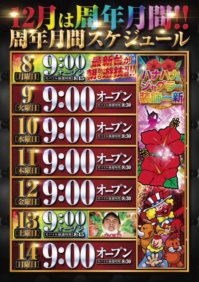 ※一部最新台は12月8日開放となります