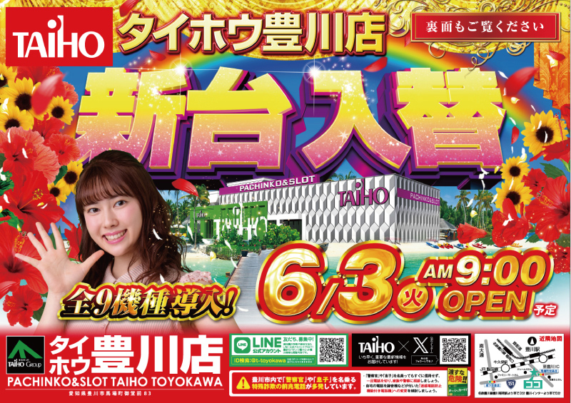 営業時間 09:00 ~ 22:45(定休日:年中無休(新台入替などで、お休みを頂く場合がございます。))