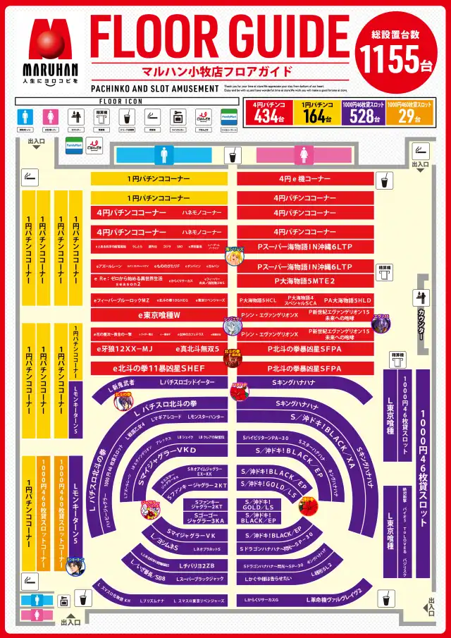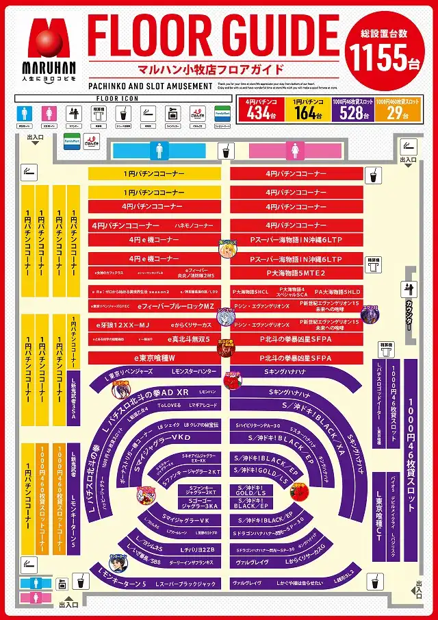 | 稼働台数 | パチンコ598台 / パチスロ557台 |