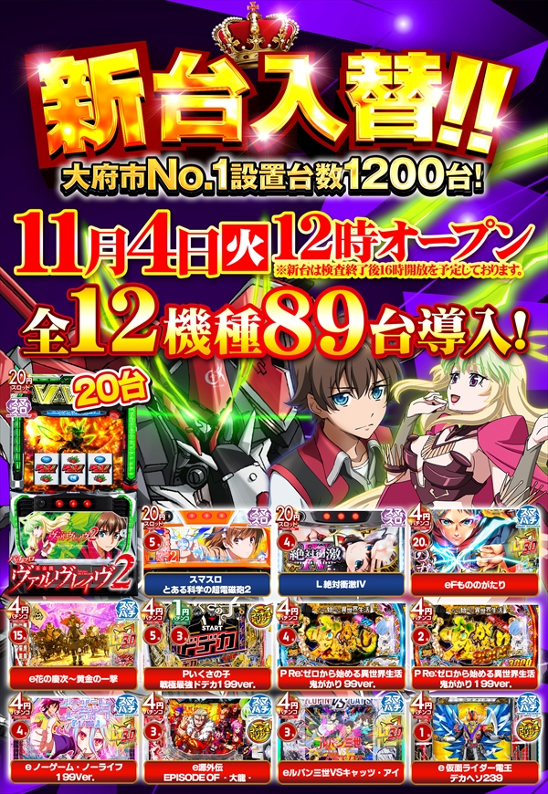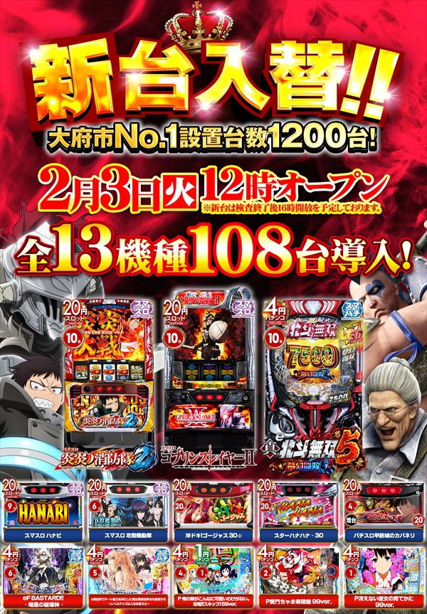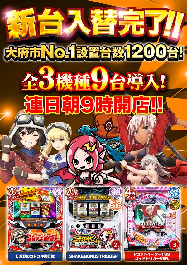 | 稼働台数 | パチンコ560台 / パチスロ640台 |
