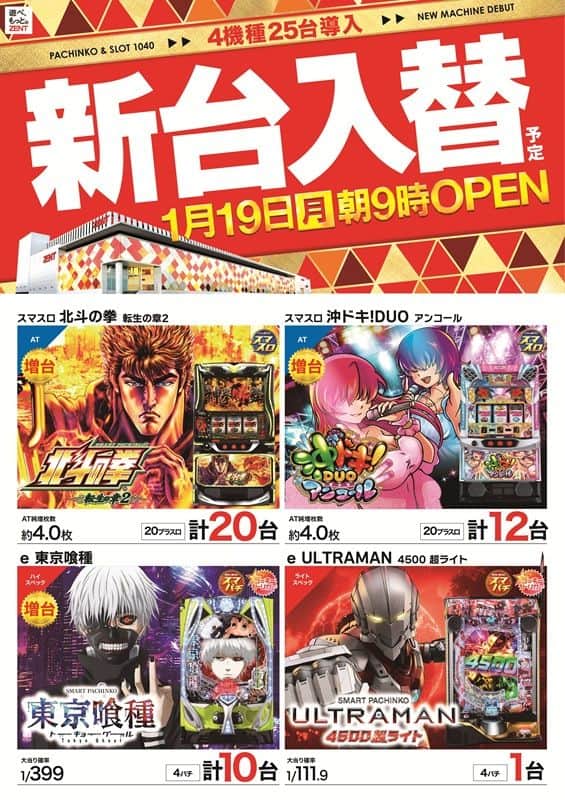 | 稼働台数 | パチンコ640台 / パチスロ400台 |
