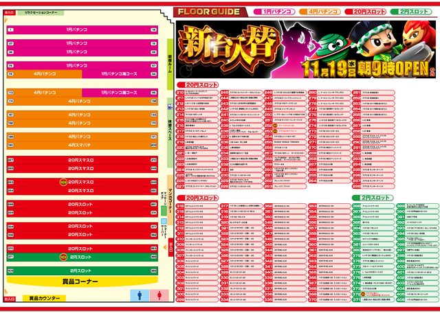 | 稼働台数 | パチンコ206台 / パチスロ196台 |