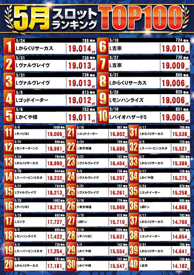 | 営業時間 | 09:00 ~ 23:40 (会員様は23:50まで延長遊技可能) |
